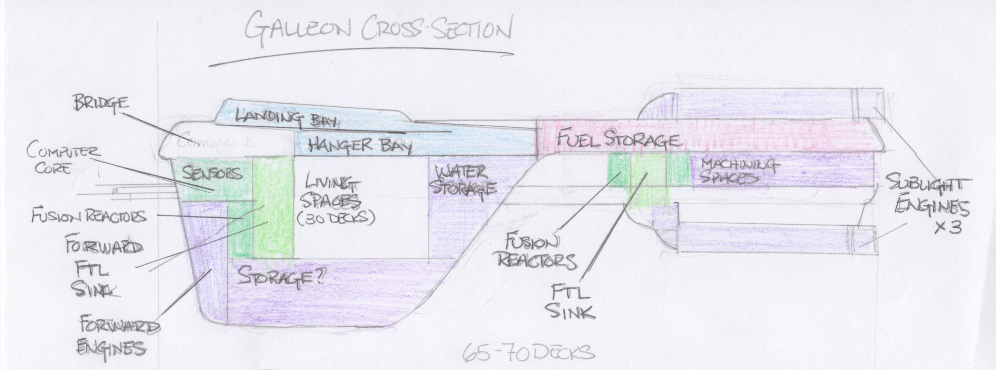 While it’s unlikely to be something a GM might use in their Battlestar Galactica campaign, I was bored so I statted up the Libran Galleon from our recent session: