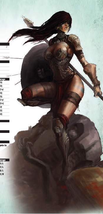 I decided to discount screencaps, comic art (or Dr. Dinosaur’s “Behold an ordinary motorist!” while driving through a building wins, hands down!) and anything that wasn’t specifically created for a game. I had a few pieces i really like — the Hill Martians Detrick did in the original Space: 1889 rulebook (p.179), the Castle Falkenstein two page splash on p.10-11 of Castle Falkenstein, and there’s a lot of really nice stuff in the Numenera book, but I think I have to go with the “Shadow Hunter” pantherwoman, tied with the Amazon Warrior from the example character pages of Mysteries of the Hollow Earth. I need to touch base with Jeff Combos and find out who the artist was, so I can give them their due.