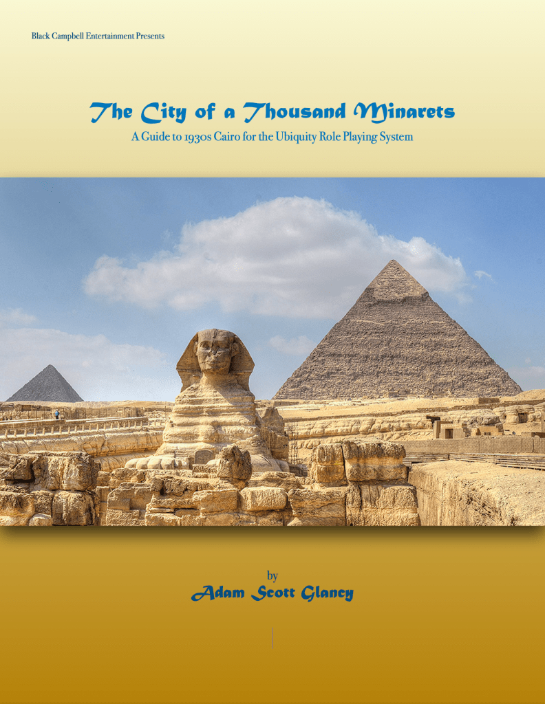 While we were in the beginning stages of that book, we were approached by Scott Glancy about doing a book on Cairo. I had a look at his initial notes and material that had been developed for an abortive computer RPG and signed him up right away. He turned in the second draft of material in November, right as the Marvelous City was going online and we’ve been furiously working on getting “the Cairo book” finished.
