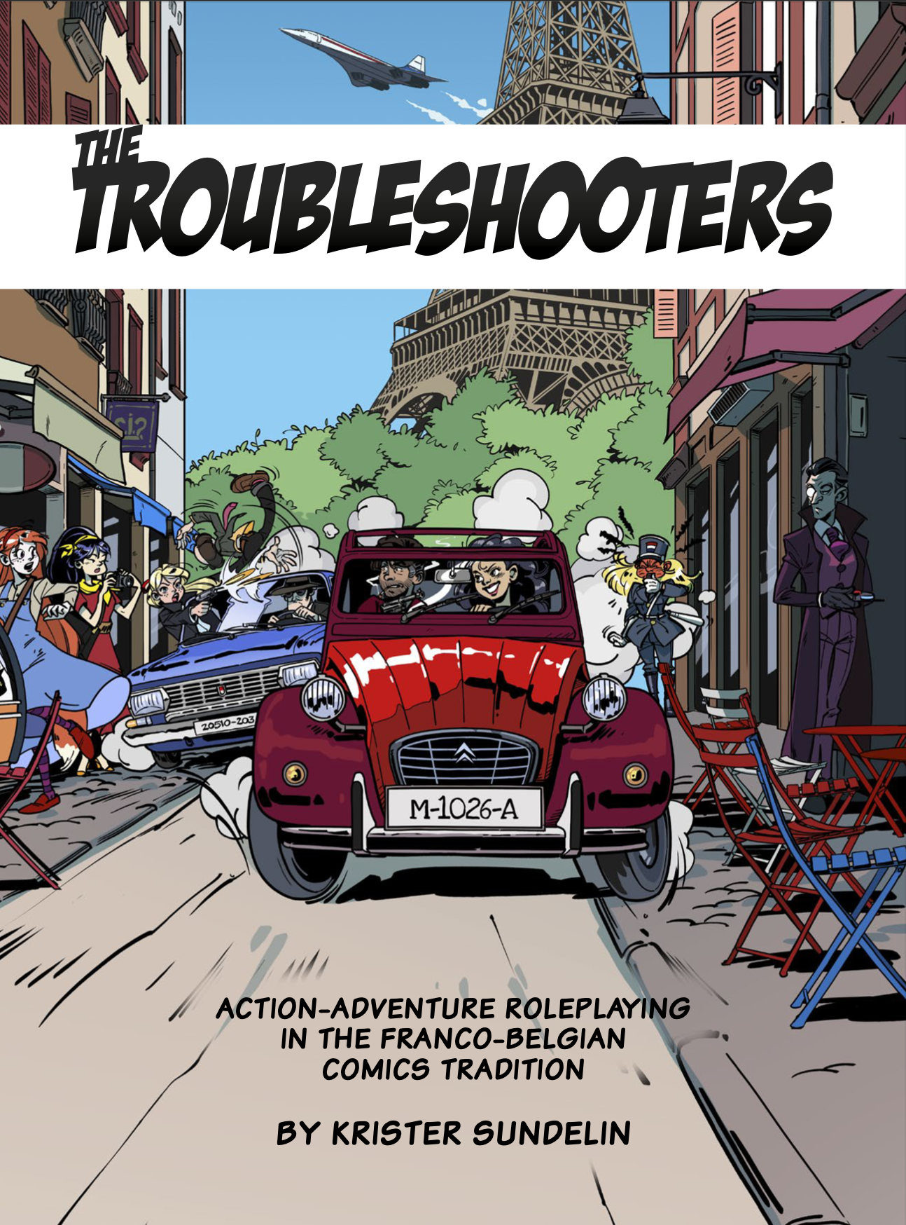 Here was another Kickstarter that caught my eye last year (gah! it was an expensive year for me with Kickstarter last year!): The Troubleshooters, a Swedish game based on the old Franco-Belgian style of comics from the 1960s/70s. Think Tintin, and you’re on the right track; this is set in the Jet Age, when tourism became a think and much of these comics revolved around traveling the world for adventure (similar to the I,Spy series or James Bond movies…). The artwork was superb (I like it when I can identify gear in RPG art!) and caught the style of the comics, so I backed the project. After some delays caused by an injury sustained by the main writer/artist, the PDF dropped a week or so ago.