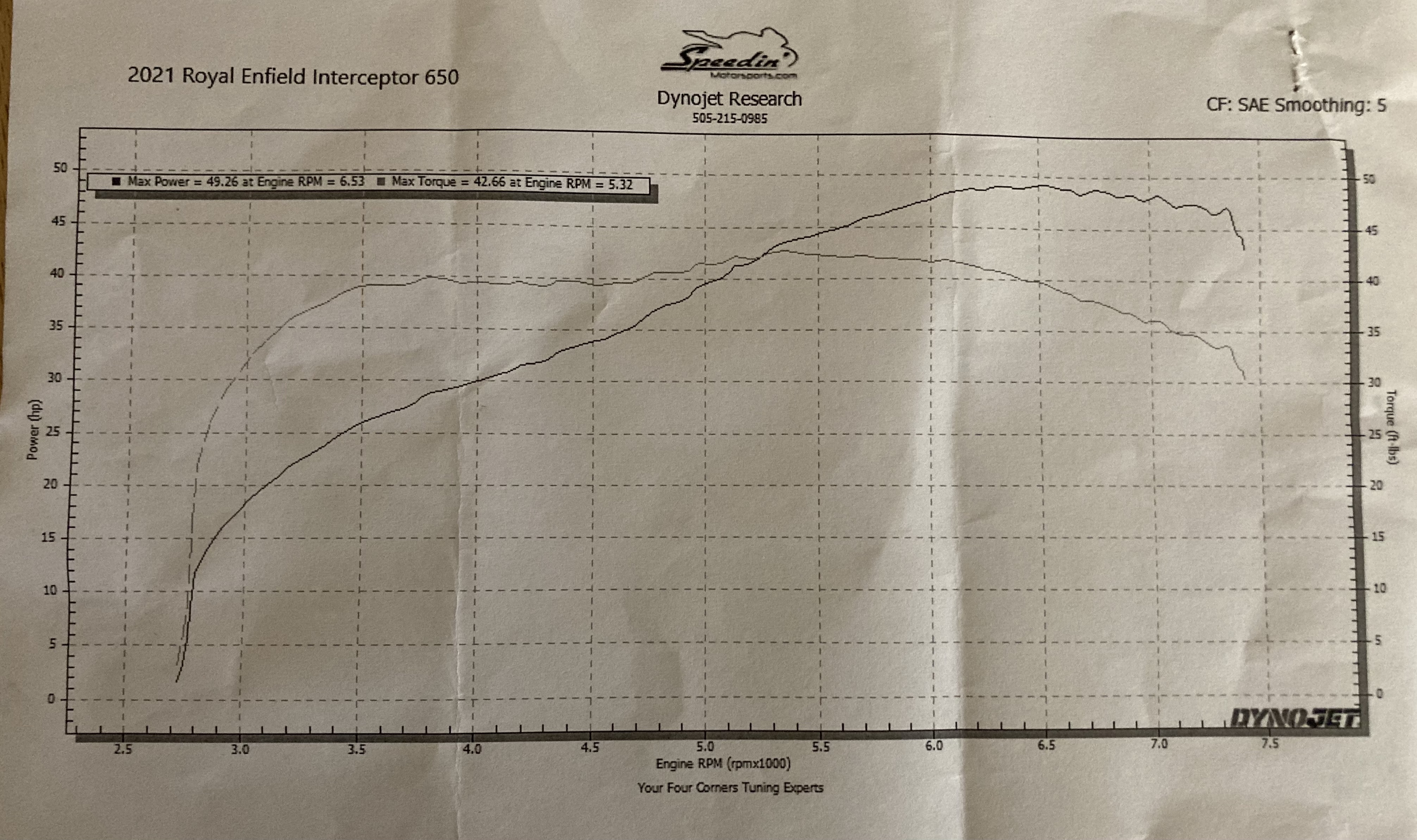 If you choose to do this particular set-up, you’ll find that no one else seems to have done it. Big bore kits, sure; not the heavy-piston and cam kit for the 650. You will want to get a PCV for the Royal Enfield, and you will need a tune. DynoJet doesn’t have it, but you can get my map from the guys at Motopia (see link above.)