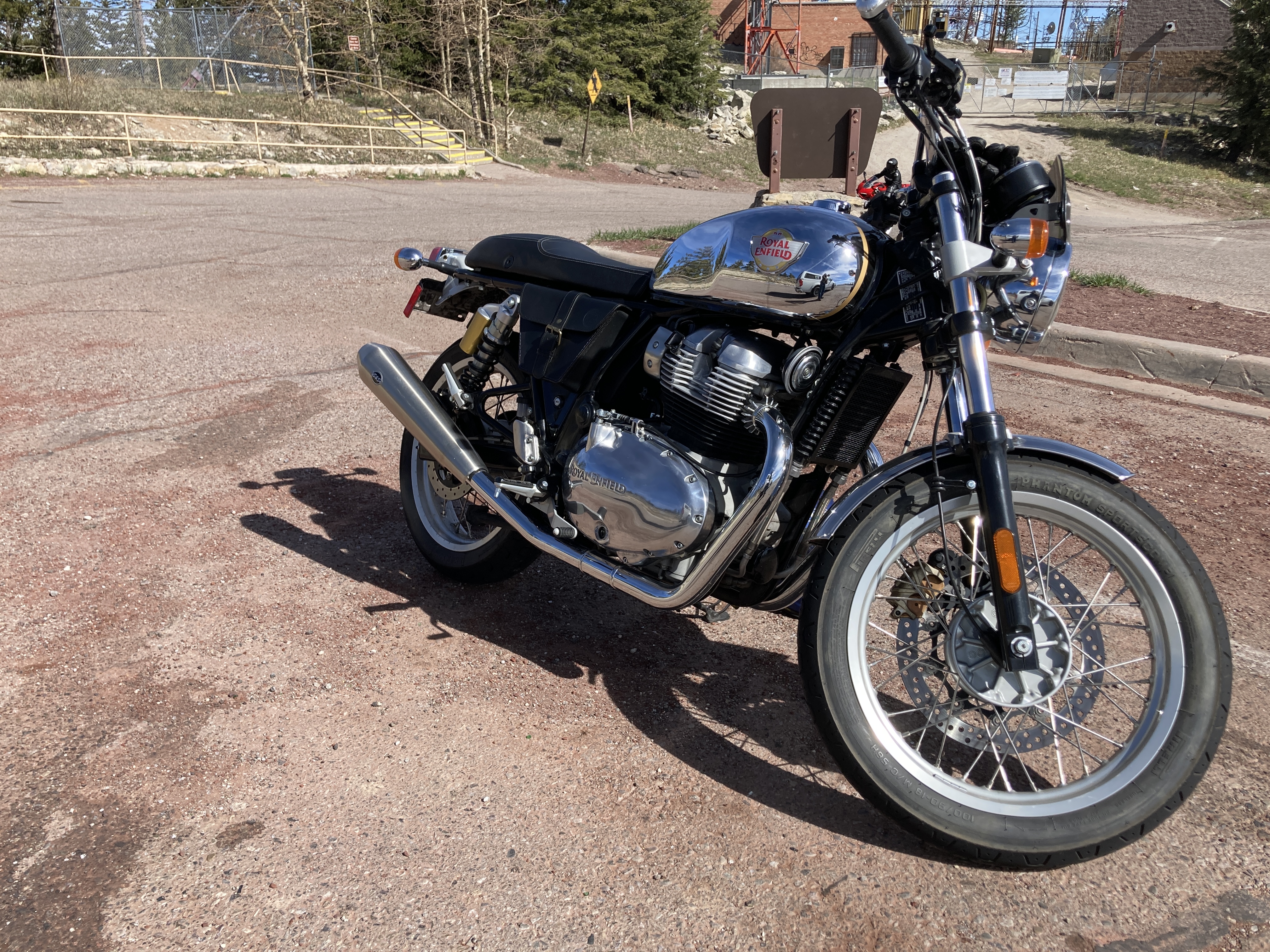 Actually…more like 16 months on. The Interceptor, or as she is known “Lakshmibai, the Rani of Enfield” has gotten almost 15,000 miles put on her in a combination of trying to kill myself on out twisty mountain roads and commuting to my workplace 23 miles away from home. As the earlier reports have illustrated, Her Majesty has been hopped-up considerably: S&S pipes, high performance cam, high compression pistons, and a airbox eliminator were added, making the bike a nightmare to keep running until we put a Power Commander V on her and got the folks at Speed Associates up in Farmington to dyno and tune the hell out of the fuel map. All bikes are way too lean, these day, for Euro emissions standards, and the Enfields are no different. Fortunately, mine is the last of the Euro4 bikes, so we had little issue enriching the fuel and squeezing almost 20% more power out of her. Here, at a mile up, she turns out 50hp at the wheel — so at sea level, that means she’s pushing 62-63hp and about 50 ft-lbs. of torque. (For comparison, the Honda CBR650R of that year was pulling 86hp and 43 ft-lbs. out of their mill. That’s not bad.) I had (once!) hit 125 mph on the speedometer, flat on the tank, slightly downhill, throttle all the way open, and juuuuuust slipping into the redline. (So figure 115ish with speedo creep.)