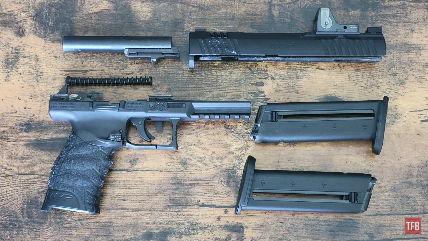 The WMP functioned perfectly with the Remington 40 grain and gave two failures to feed (the slide didn’t get back far enough to pick up the next round) on the CCI 30 grain. Walther’s WMP website has ammo recommendations and they suggest 40 grain and speeds of 1875fps+. The 30 grain will “Work OK” according to the website. Both failures occurred at the end of the session, when the pistol was truly filthy and had come straight from the box without any cleaning. While apart, there was white packing grease in the slide rails — this probably was hampering cycling, as we had a couple of “is it going into battery” moments where the slide two stepped back into position with the 40 grain Remingtons. I’m going to blame the grease. After a quick rag cleaning on the line, the next fifty rounds wen’t downrange without issue.