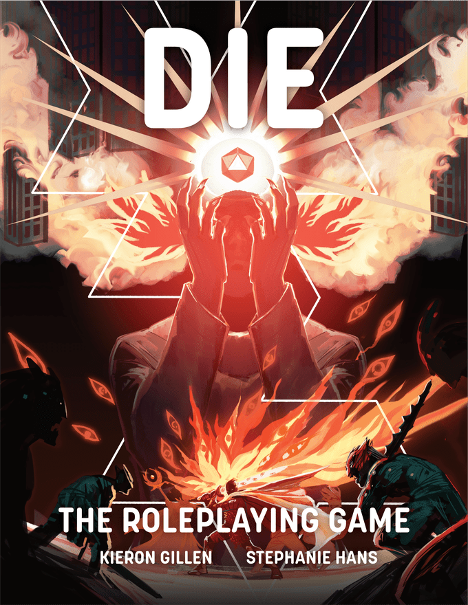 This has rolled across my Kickstarter feed a while back: DIE the Roleplaying Game. The conceit is one we’ve all seen — players of a game get sucked into the “real” thing. I’ve run a couple of mini-campaigns using this idea in the past, but this looked like it was attempting to get a lot more meta about it. Written by Kieron Gillen, a British comic book writer, and Stephanie Hans, a French comics artist, it was a tie-in to a comic series…or maybe the comic was a tie-in to the game. Either way, while you don’t need to have read the comic (and I hadn’t when we kicked the tires on the game last week, I have now).