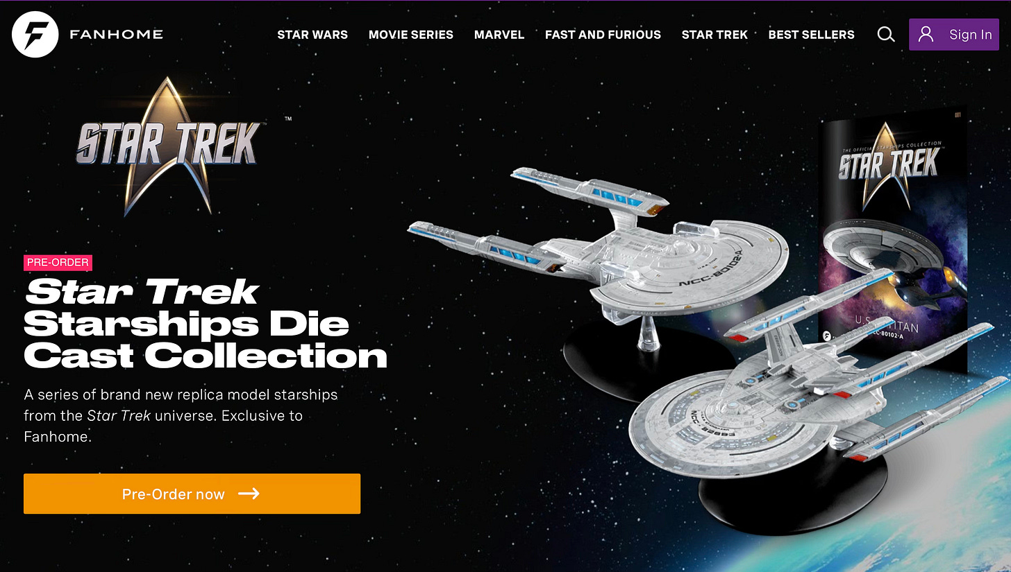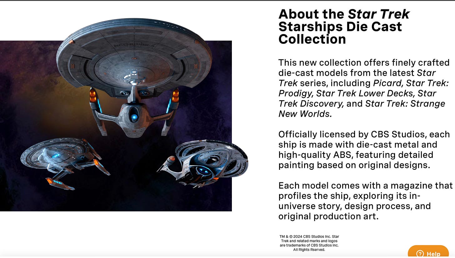 After the demise of Eaglemoss, the likelihood of new Star Trek starship models looked slim. FanHome, which took over the license and (I’m assuming the dies and related materials), has just announced today that they will be relaunching the Star Trekstarship collection starting with ships from Picard.