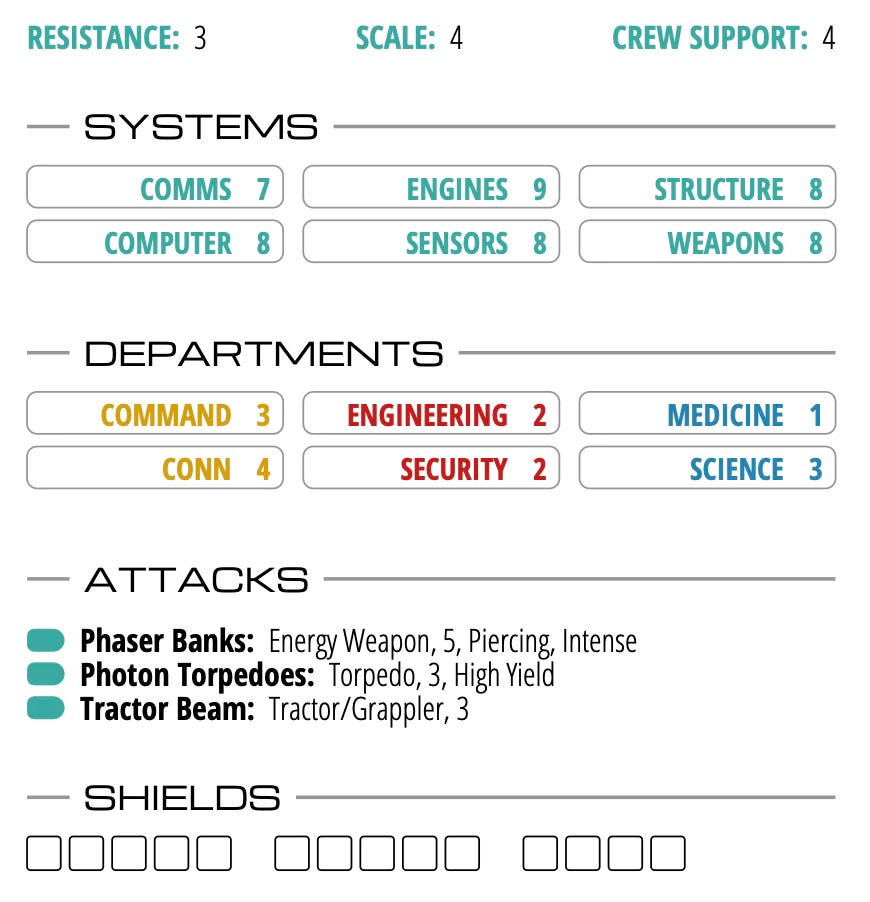 HIGH-RESOLUTION SENSORS: The vessel’s sensors can gain large amounts of accurate data, though they are extremely sensitive. While the vessel is not in combat, any successful task assisted by the ship’s Sensors gains 1 bonus Momentum. Bonus Momentum may not be saved.