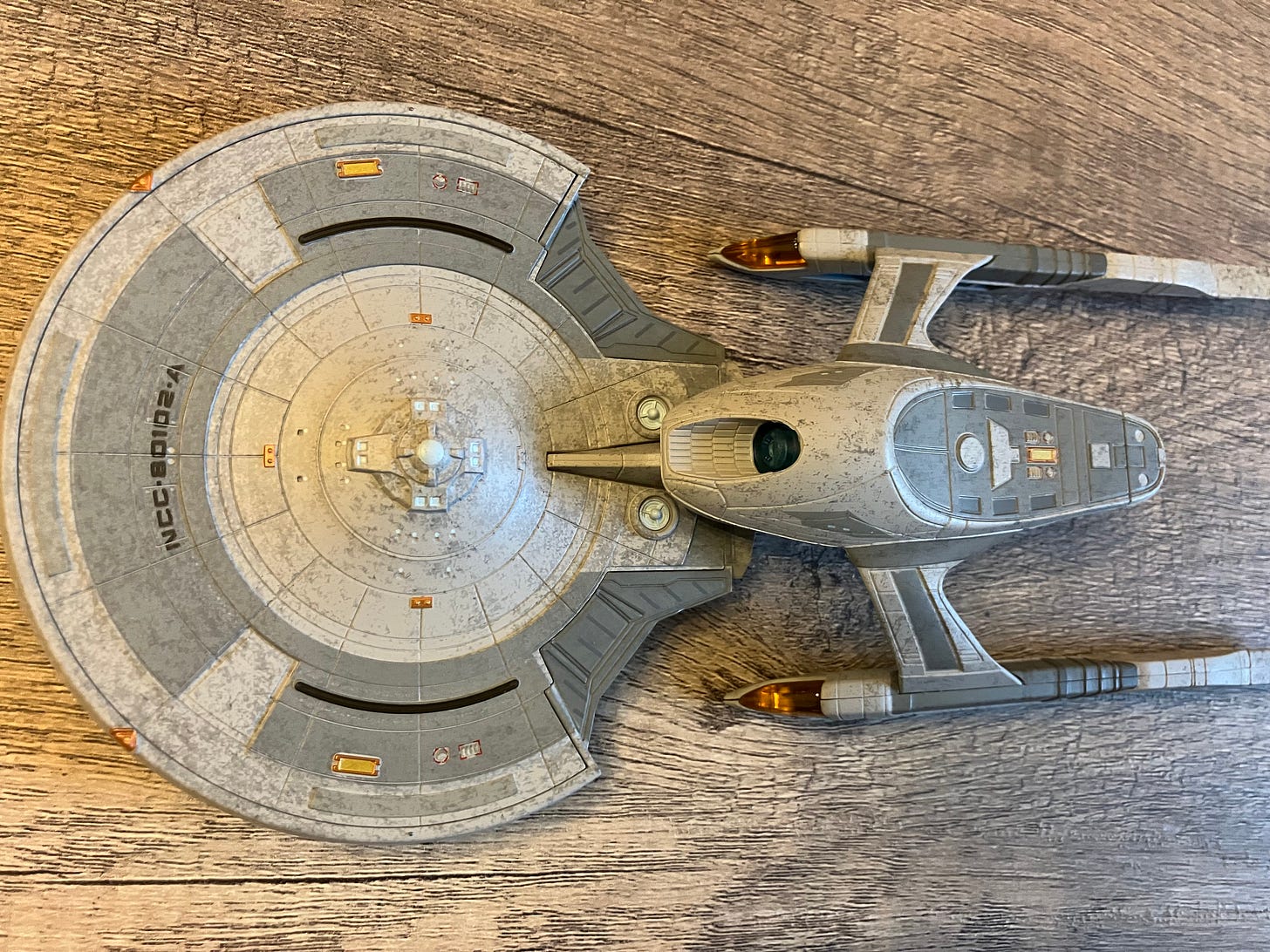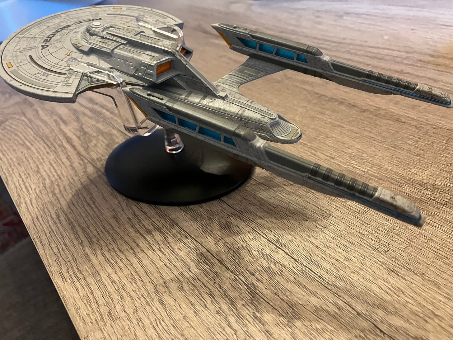 I was late to the game on the Eaglemoss collections. I knew about their plethora of small models, which always seemed pricey to me. When they started up their Battlestar Galactica line, I jumped and started subscribing to their ship of the month. Oi then branched out to the Alien line. These were all their “XL line” — larger than the wee hand-sized Star Trek stuff. With the Discovery XL line (and the superb break with the old school look of ships) I jumped on collecting many of those ships, as well.