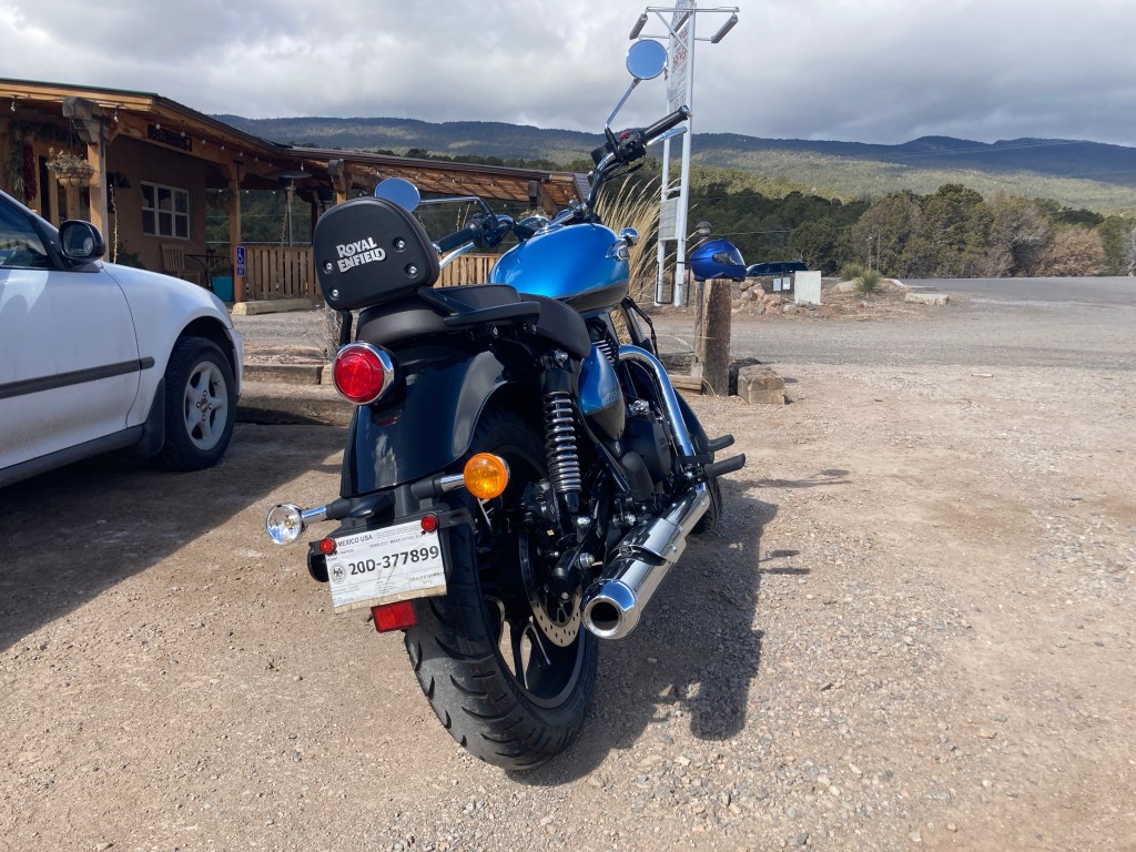 If you’re a sportbike guy/gal, the numbers on this thing aren’t going to impress: 65hp near the redline and 53 ft/lbs of torque around 5k on the tachometer. That’s a bit less than the 900cc water-cooled Bonnevilles and about on par with my older Thruxton. Compared to a stock Interceptor, it’s a rocket — the Enfield normally turns out 48hp and 30ish ft/lbs of torque near the top end, but the gearing on the Indian-made bikes is fantastic, so these things scoot much faster off the line than your would expect and most can hit about 115mph under perfect conditions. My Interceptor has had a high-performance cam and domed high-compression pistons fitted and the tune has pulled her up to a sea level performance of about 62hp and 44 ft/lbs of torque, and it comes on hard about 3000 rpm.