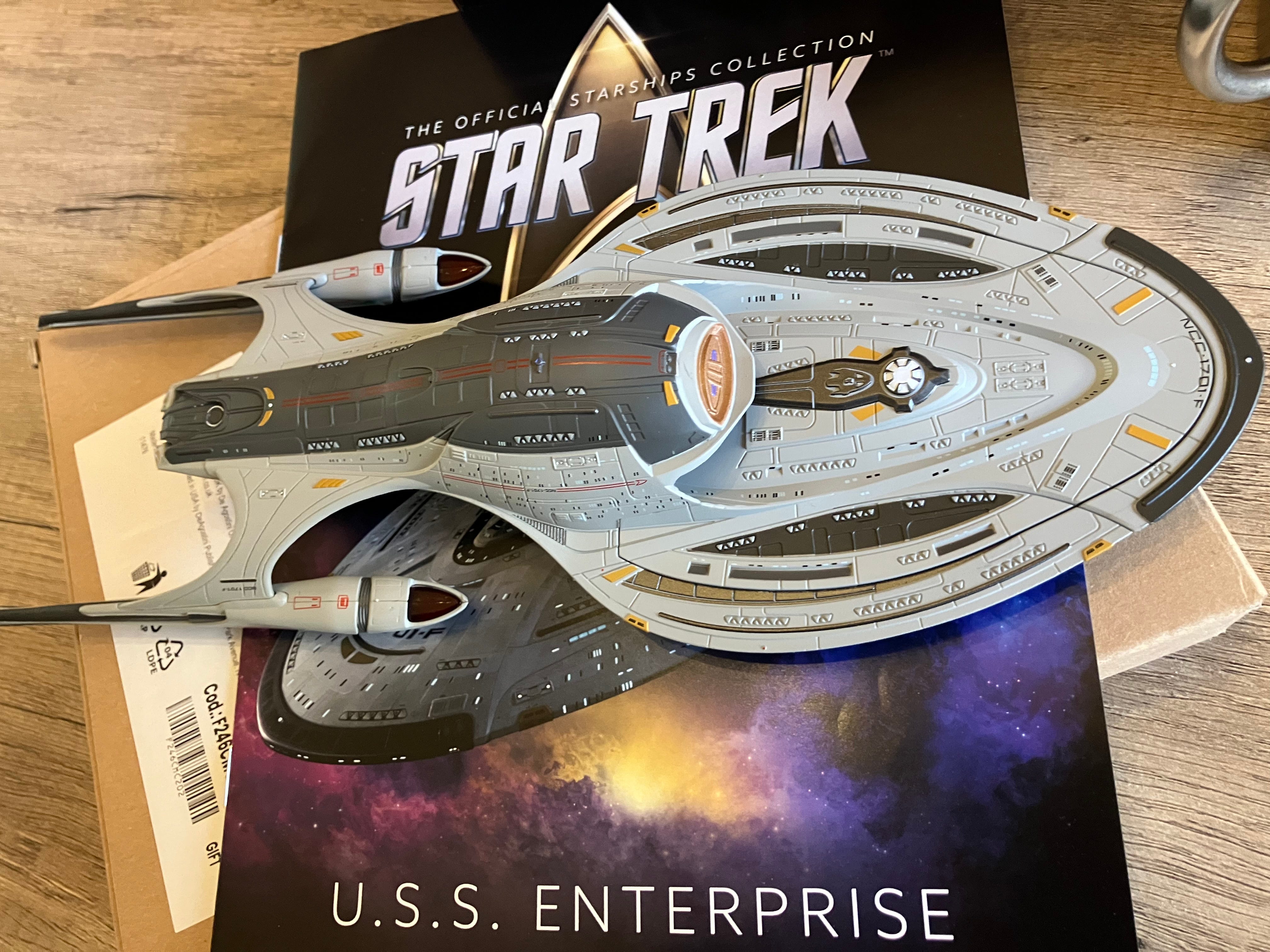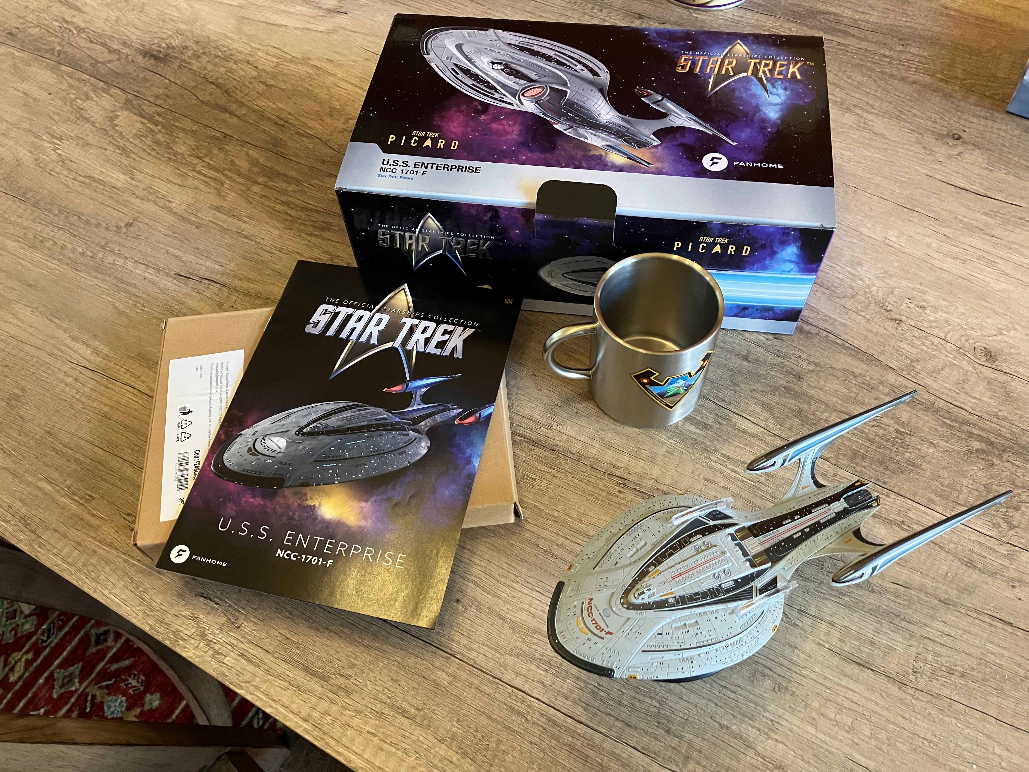 FanHome’s off to a great start, in my opinion, with this collection. So is this Enterpriseworth it? It you’re a completist, it you like your starships “looking all Sovereign-y”, as Mariner Beckett put it, if you like the STO ships — yes. If you’re not a fan of the newer Trek, it might not appeal at $90ish. I’ll admit, this is one that will probably get shelved and sold later, unlike Titan and Stargazer. I’m hoping for a focus on Strange New Worlds ships — I’d like to see the new Gorn craft, or maybe a TOS-styled Miranda.